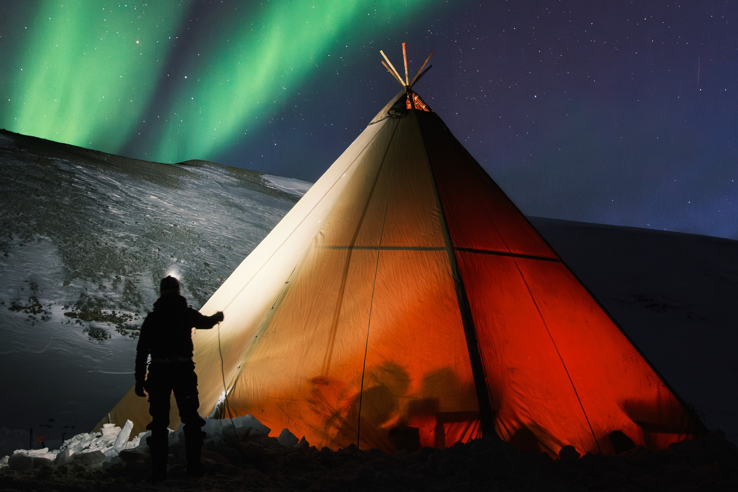 Join us on a snowmobile safari into the polar night, and let yourself be captivated by the unique blue light! We will hunt for the Northern Lights and visit our Camp. We drive snowmobile out Adventdalen extending eastward from Longyearbyen and into a river landscape that takes us to Brattli valley. Here we take the trip into the riverbed and look at the stone structures that river has washed out. After arrival we will enjoy ourselves in the tent by candlelight and bonfire. Sitting at the table, on benches with reindeer skins, you will then be served hot lunch while the guide tells stories about Svalbard. Important notice: Early in the season the camp may be organised in a different location than Brattlidalen due to insufficient snow conditions, in which case the duration of the trip will be shorter than normal and have a reduced price. Alternatively, the camp will be organised outdoors where we’ll enjoy our lunch around a campfire.