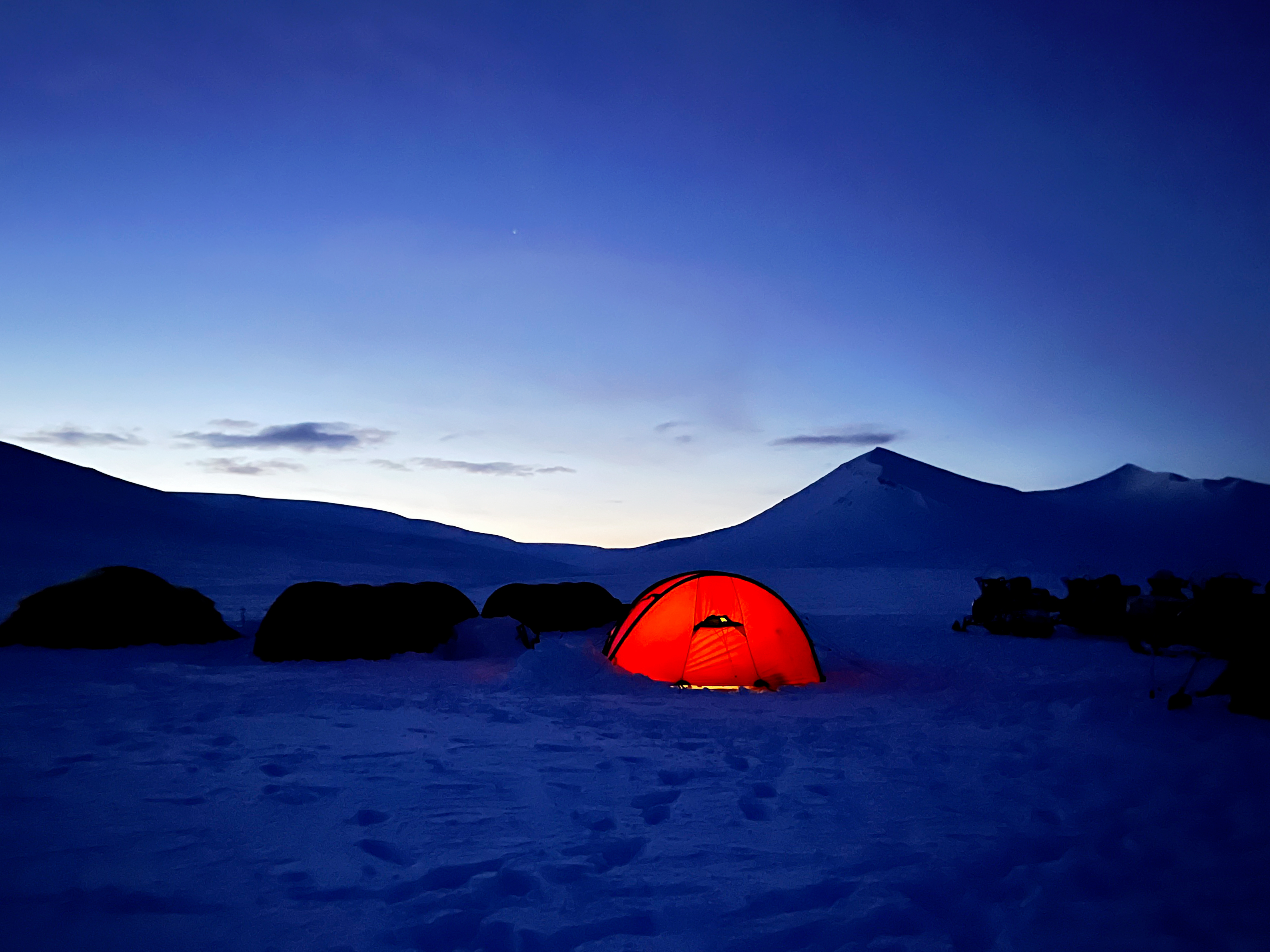 500 KM - Go beyond - Surreal landscapes - Wildlife - Remoteness, so no restaurants & toilets :-) - Ice caves - History - Polar Bear Watch - Unbeatable Memories! Sounds like an adventure?! Join us on our unique 4 days/3 nights snowmobile expedition exploring the Northern parts of Spitsbergen, exploring unique and remote places far away from the crowds! This snowmobile expedition is for those who seek adventure, who dream of adventure and who want to create unbeatable memories. Those who want to visit unique places where no one goes and look to emerge deep into the Arctic wilderness, experiencing a true Polar expedition in the Northernmost part of the world. Yes? Let’s go!…. It is not an issue if you do not have previous snowmobile experience. We will give clear instructions and we will start easy to get you into the flow! You can either drive your own snowmobile or if you book with more than 1 person, share one (it is possible to swap along the way). Let’ s start with some comfort.. The evening before our expedition, we invite you in our basecamp where we will host you a culinary dinner. During this moment you will meet our team, have a briefing about our upcoming expedition and give you a safety instruction whilst we prepare our gear for the day after. Take a good night rest in your hotel as the upcoming days will be packed with adventure! Expedition day is there… Yes, still a bit of comfort as we will transfer you from your hotel to our basecamp. We will dress up in our snowmobile suits, which will all be provided to you and then we are good to go! During our first part of driving, you can get familiar with your snowmobile and we will still be a bit driving in “ day tour “ area. :-)….It won’t take long though, before we say goodbye to all other tourists we meet in the valley’s and take a turn towards the more remote areas. Large valleys, crossing glaciers and amazing landscapes will be the highlights of this day. Our first overnight stop will be at Brucebyen, where we will set up our wilderness camp. Enjoy the view of a massive glacier whilst our guide/chef de la expedition prepares you a warm and welcoming expedition dinner. Ok, it is expedition food, but we promise it tastes fantastic! A good night sleep in our warm tents and sleeping bags will prepare us for our next expedition morning. Did we mention you need to join the Polar bear watch at night to make sure everyone is safe?! Starting to feel as an explorer… Let’s start our morning with melting snow to make a descent coffee or tea. Is there a better way to start your day, warm coffee in front of a glacier enjoying pure Arctic nature?We pack up camp and will make our way to some unique places. Crossing the hard frozen sea ice, will bring us on the other side of the Billefjord, making our way along Dicksonfjord, passing by a huge 40 meter high frozen waterfall, a perfect location for a short stop. When it is time to continue our journey we will make our way all the way up to Svenskhuset, historically known as the haunted house! Your guide will tell you all about this interesting and at the same time sad story, where seventeen Arctic explorers passed away during their overwintering. A very impressive place to visit, which will spook in your mind forever….. Enjoy a good night sleep tonight :-) whoeoeoeoeo…. Getting comfortable with the Arctic…. Already into our third day of exploring the remote Arctic, you will probably be more used by now to all the endurements of being a Polar adventurer. Have we mentioned wildlife already? On all our days we will keep our eyes open in case we spot wildlife. We will treat wildlife with respect and will not disturb them in any way, so we can enjoy the sight of Arctic wildlife in their natural habitat. Today we will make our way towards Petuniabukta, passing by the abandoned mining settlement of Pyramiden. Petuniabukta will be our camp for this night, but not before we first explore an amazing ice cave at Horbyebreen, with a huge glacier wall. Are you up for some ice cave climbing?! Do I still feel my toes?… :-) Today will be our final day of our snowmobile expedition. As comfortable as we are right now, being out there in the wilderness, growing a beard, no showering, wilderness peeing, we have to call this our final day. But we will make the absolute most out of it! We will guide you for the last day, taking amazing routes, beautiful views and capture all scenery around us! At the end of the day we will arrive back in civilization with a ton of memories and great heroic stories to tell! After a very welcoming shower we will end our expedition together with a dinner at one of the great restaurants in town. Back in phone signal so time to share photos with all your loved ones!